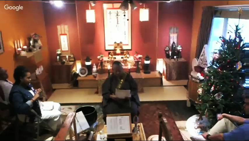 Myokei Caine-Barrett, Resident Priest at Myoken-ji, reads the New Year’s Gosho following service Dec. 27, 2015