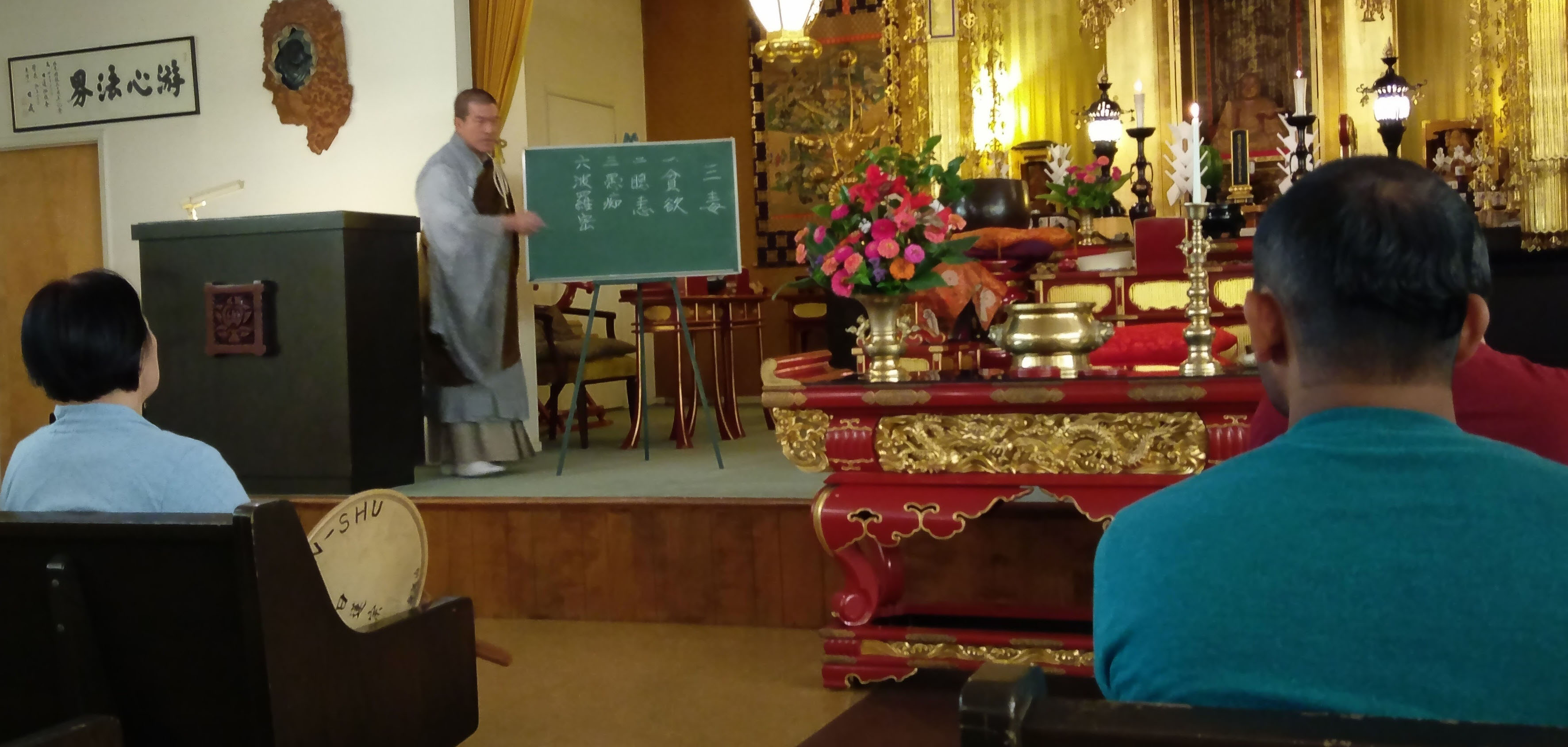 “World-Honored One! At that time the poor son, who had worked at various places as a day worker, happened to come to the house of his father. Standing by the gate of the house, he saw his father in the distance. His father was sitting on a lion-like seat, putting his feet on a jeweled footstool. Brāhmaṇas, kṣatriyas, and householders surrounded him respectfully. He was adorned with a necklace of pearls worth ten million. The secretaries and servants were standing on either side of him, holding insect-sweepers made of white hairs. Above him was a jeweled awning, from which streamers of flowers were hanging down. Perfume was sprayed and beautiful flowers were strewn on the ground. He was exhibiting treasures and engaging in trade. Adorned with these various things, he looked extraordinarily powerful and virtuous.