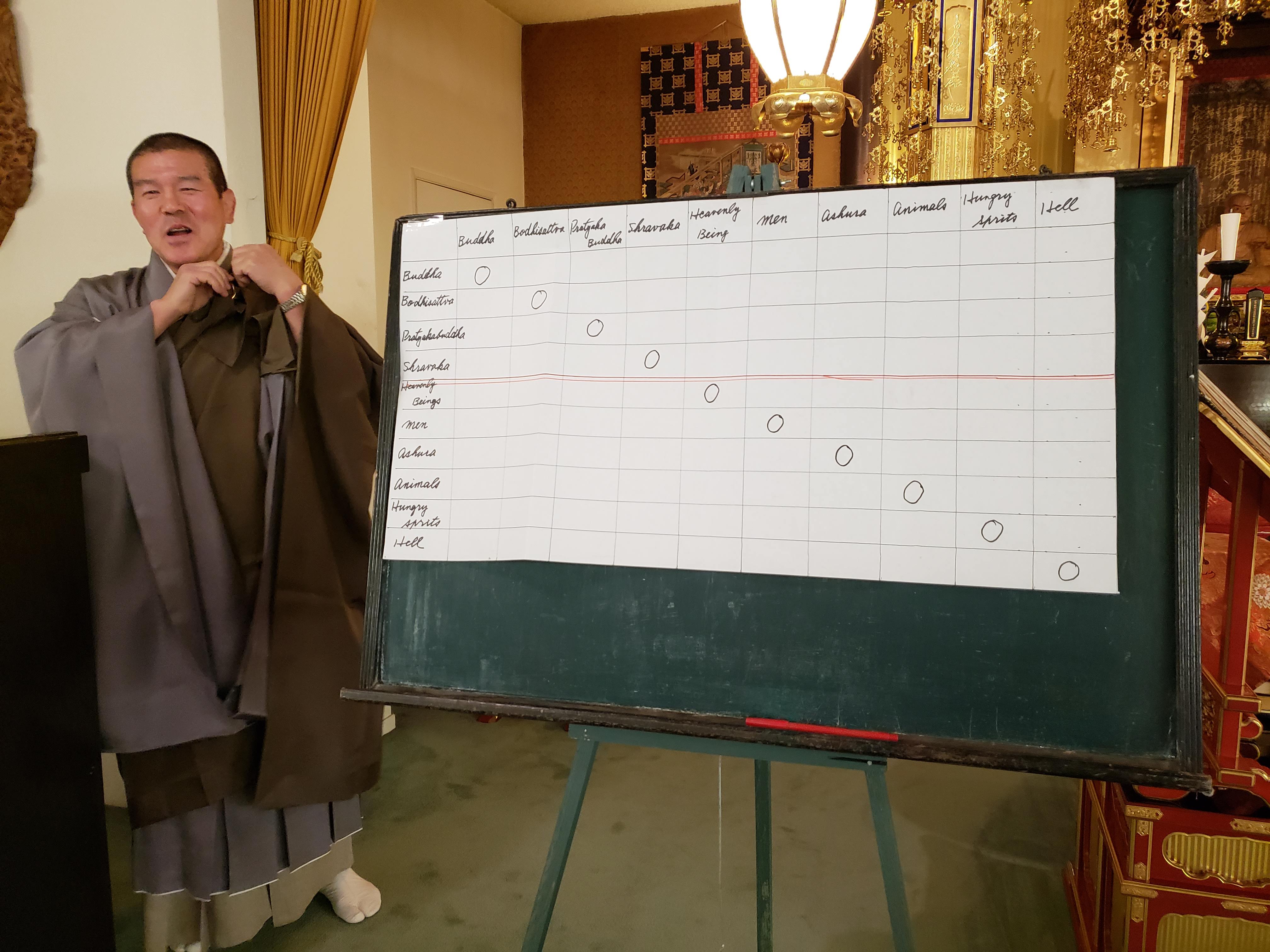 Ven. Kenjo Igarashi used the opportunity of the large crowd at the service to offer a quick overview of Ichinen Sanzen, a shorter version of the lecture he gave last year on The Logic of 3000 Realms.