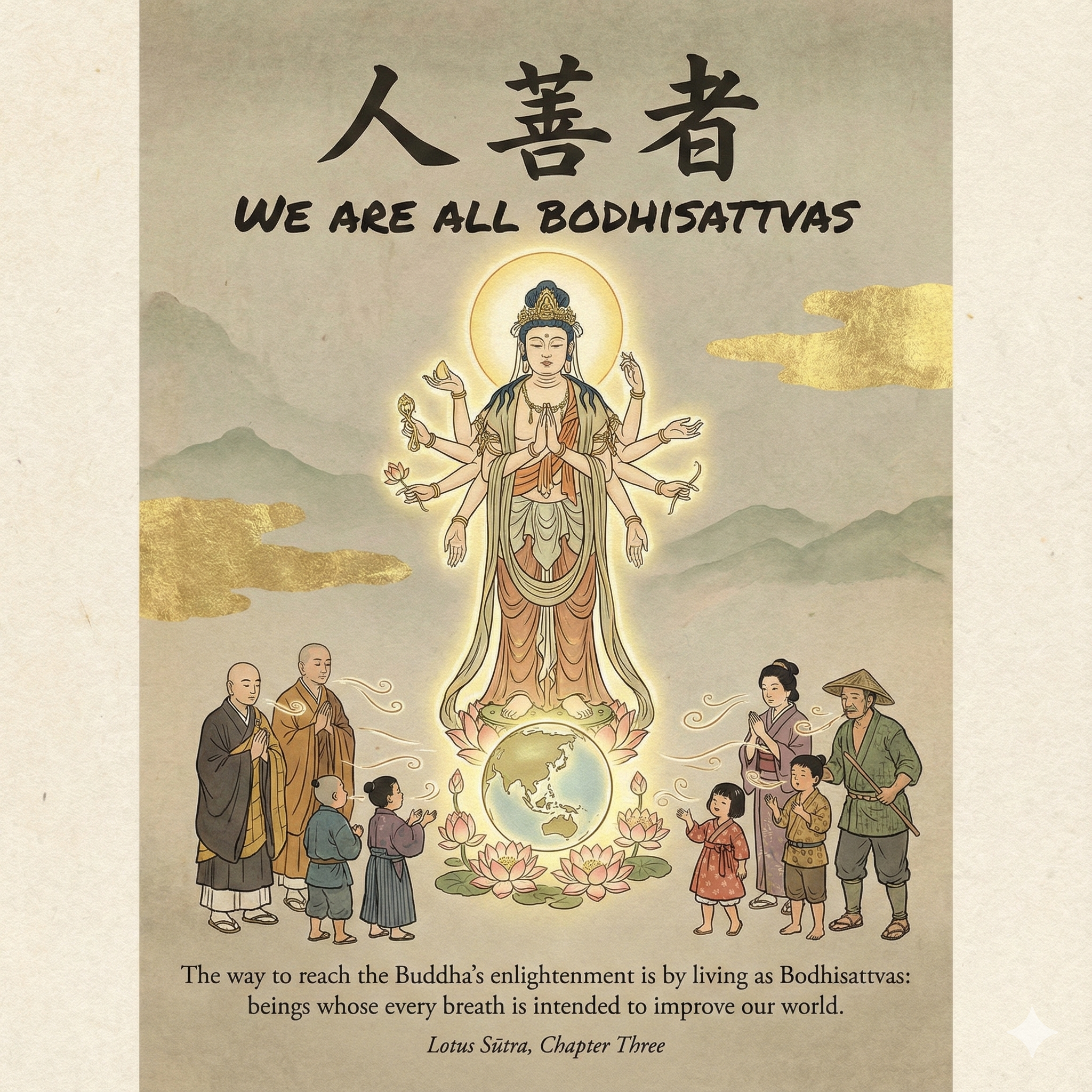 Focus the illustration on showing that all people who follow the Buddha are Bodhisattvas