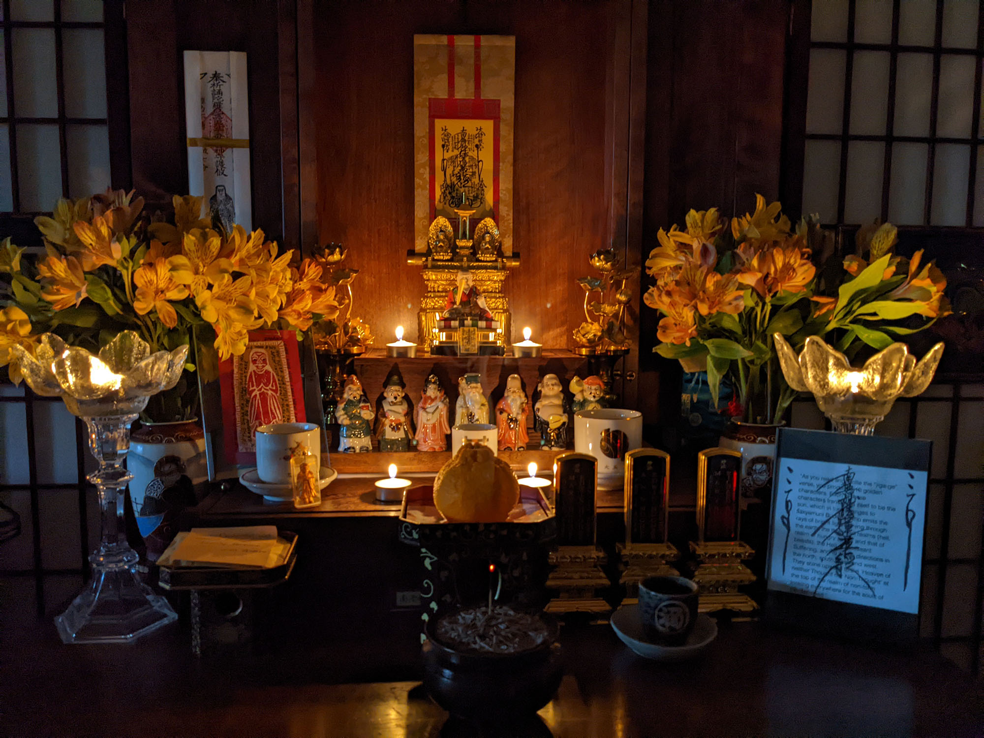 This morning just as I was going to start chanting Daimoku the power went out. I added a few candles to illuminate the altar and resumed chanting Daimoku. A half-hour later, just as I was concluding my morning service with a final Namu Myoho Renge Kyo, the power returned and the lights snapped on. We need the rain here in California but I’m not sure we need this much wind.