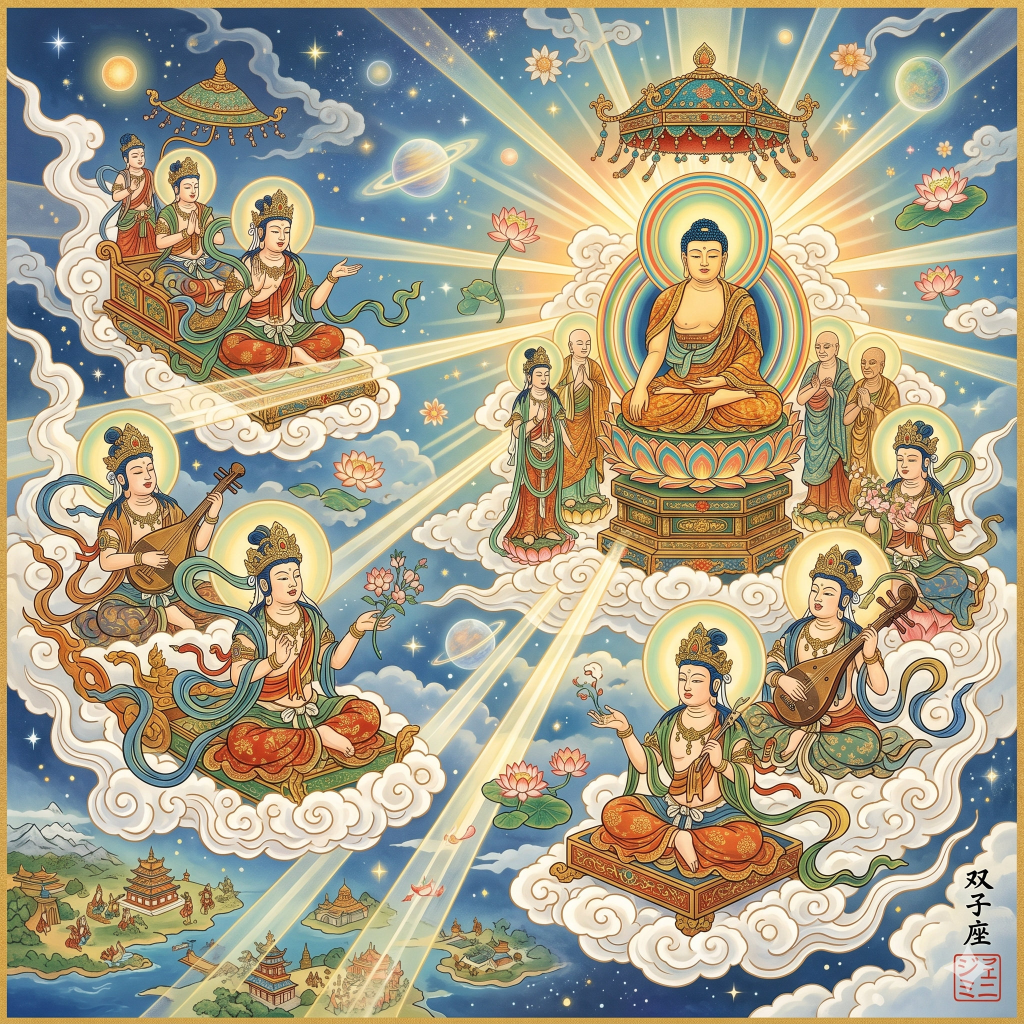 The Brahma Heavenly-Kings of the Zenith sing these verses in Chapter Seven of the Lotus Sūtra. They gave up their kingdoms, their subjects and their homes to travel across innumerable worlds to hear the Wonderful Dharma. They inspire our devotion by showing how important this teaching is to them. For us who know of the Ever-Present Buddha Śākyamuni, we recognize that the Buddha exists everywhere, even in our triple world of form, formlessness and desire. When let go of the delusions that imprison us, and recognize this Buddha in our midst, we find ourselves in the Buddha’s pure land.