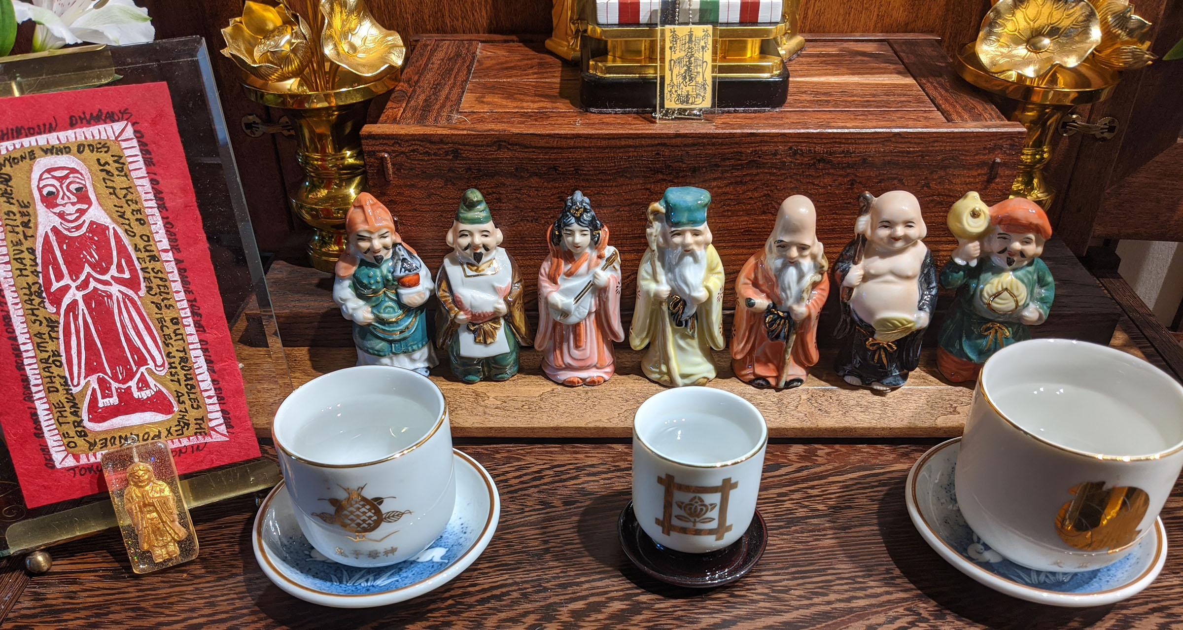 Anyway, this revelation involved the Seven Happy Gods on my altar. I discussed the addition of these gods to my practice back in July during my 21-Day Staycation Retreat Encouraged by Universal Sage. Read about it here. What is important to this story is the encouragement Rev. Kenjo Igarashi gave me before he performed an eye-opening for the gods.