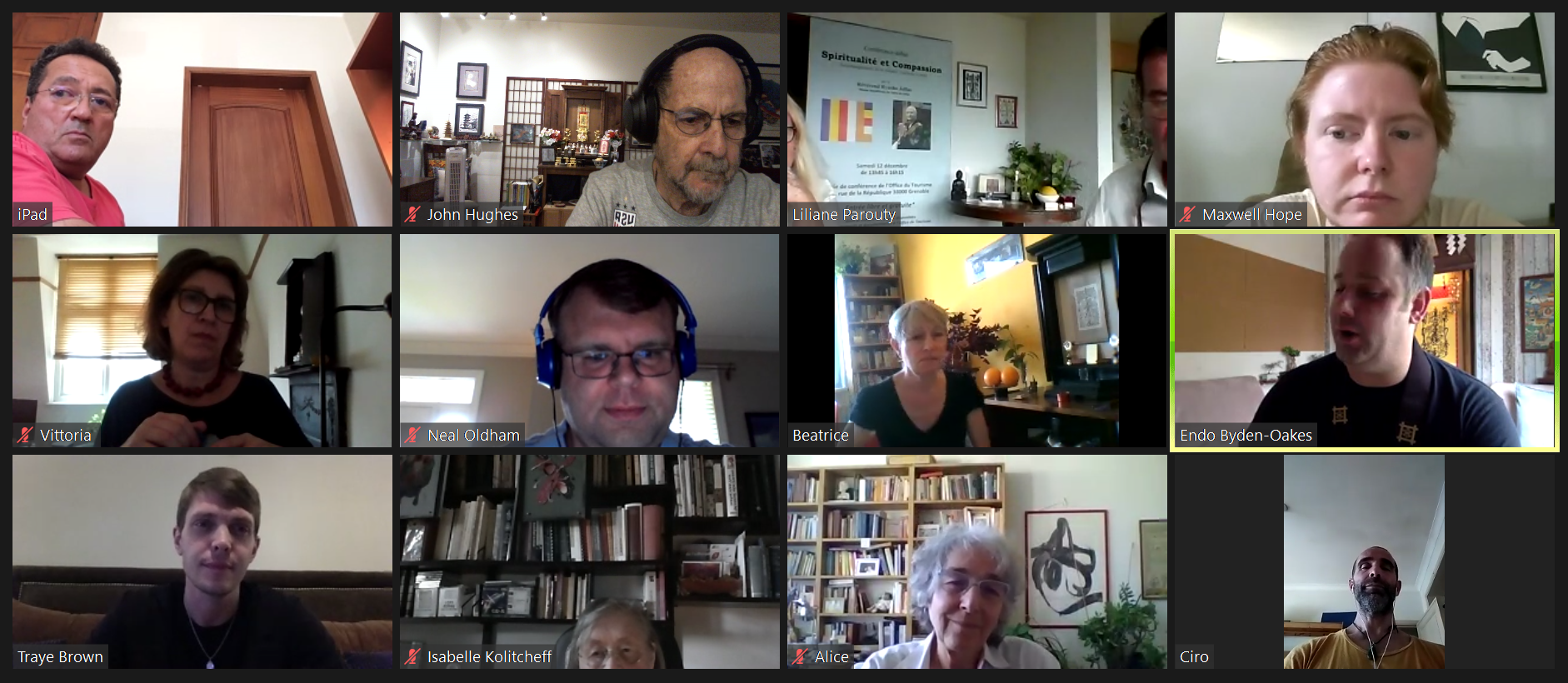 The number of attendees fluctuated between 46 and 50, including Ryusho’s brother, Tim, and his niece, Beth. We even had an unwanted Zoom-bomber interrupt the service.