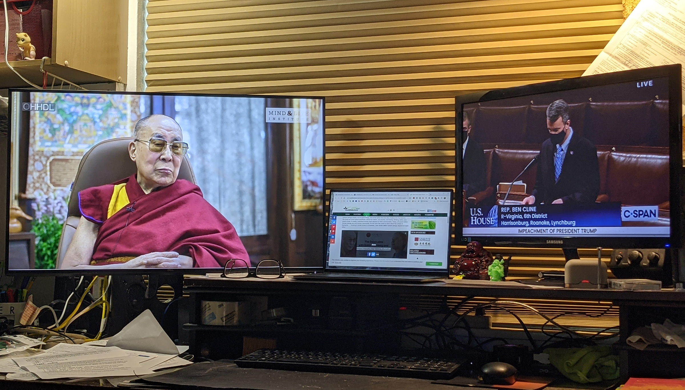 While listening to the Impeachment debate in the U.S. House of Representatives I was browsing my newsfeed and came across an article in the online magazine Buddhistdoor entitled, Dalai Lama-Greta Thunberg Dialogue a Call to Action for a Planet in Peril. With the debate muted on one monitor, I called up the video from the January 9 online conference entitled, The Dalai Lama with Greta Thunberg and Leading Scientists: A Conversation on the Crisis of Climate Feedback Loops.
