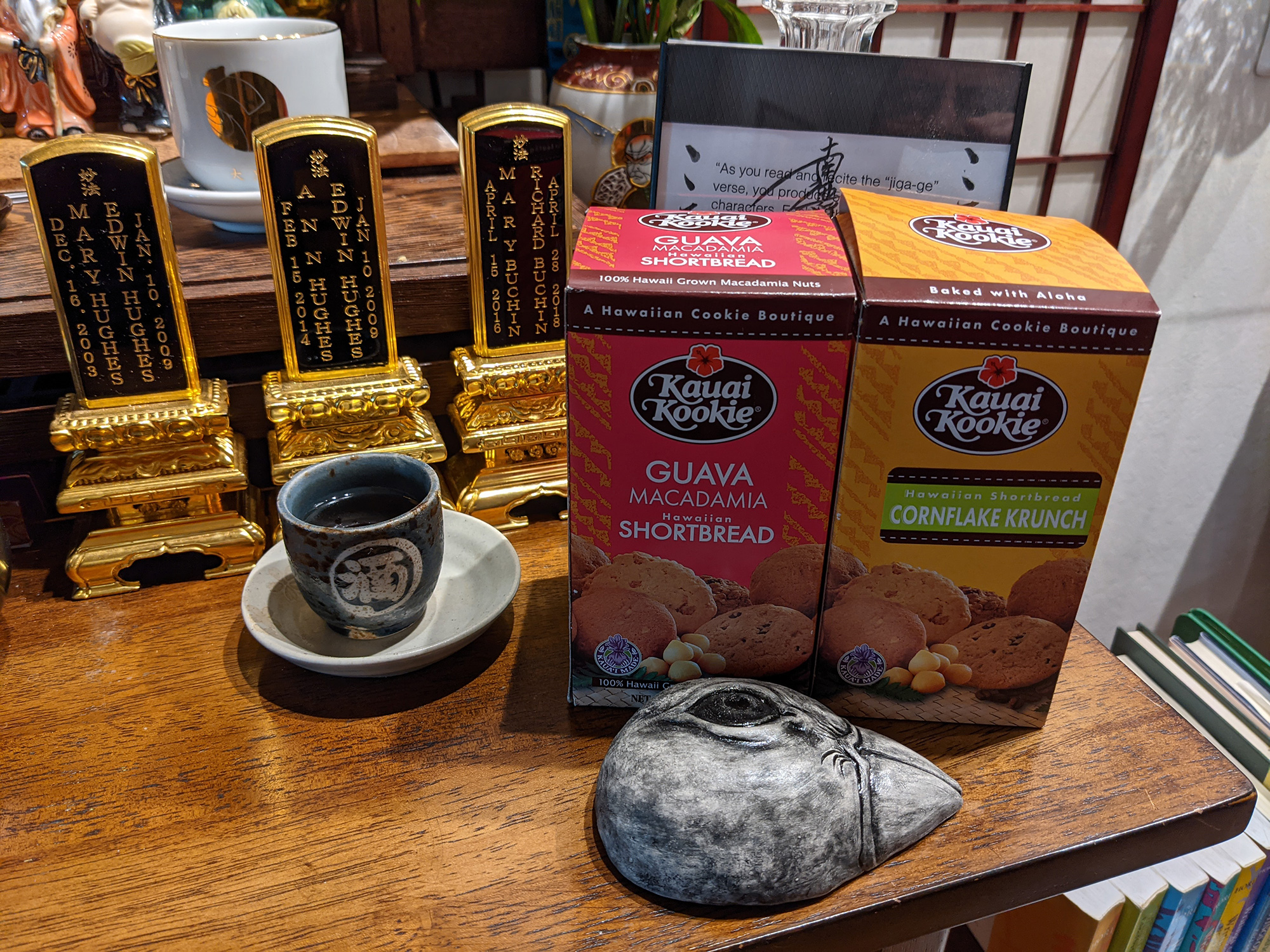 Today is the one year anniversary of the death of Ryusho Shonin. I held a personal memorial service for him this morning, offering him cookies and a piece of local artwork. Sweets and art – two things Ryusho always appreciated.