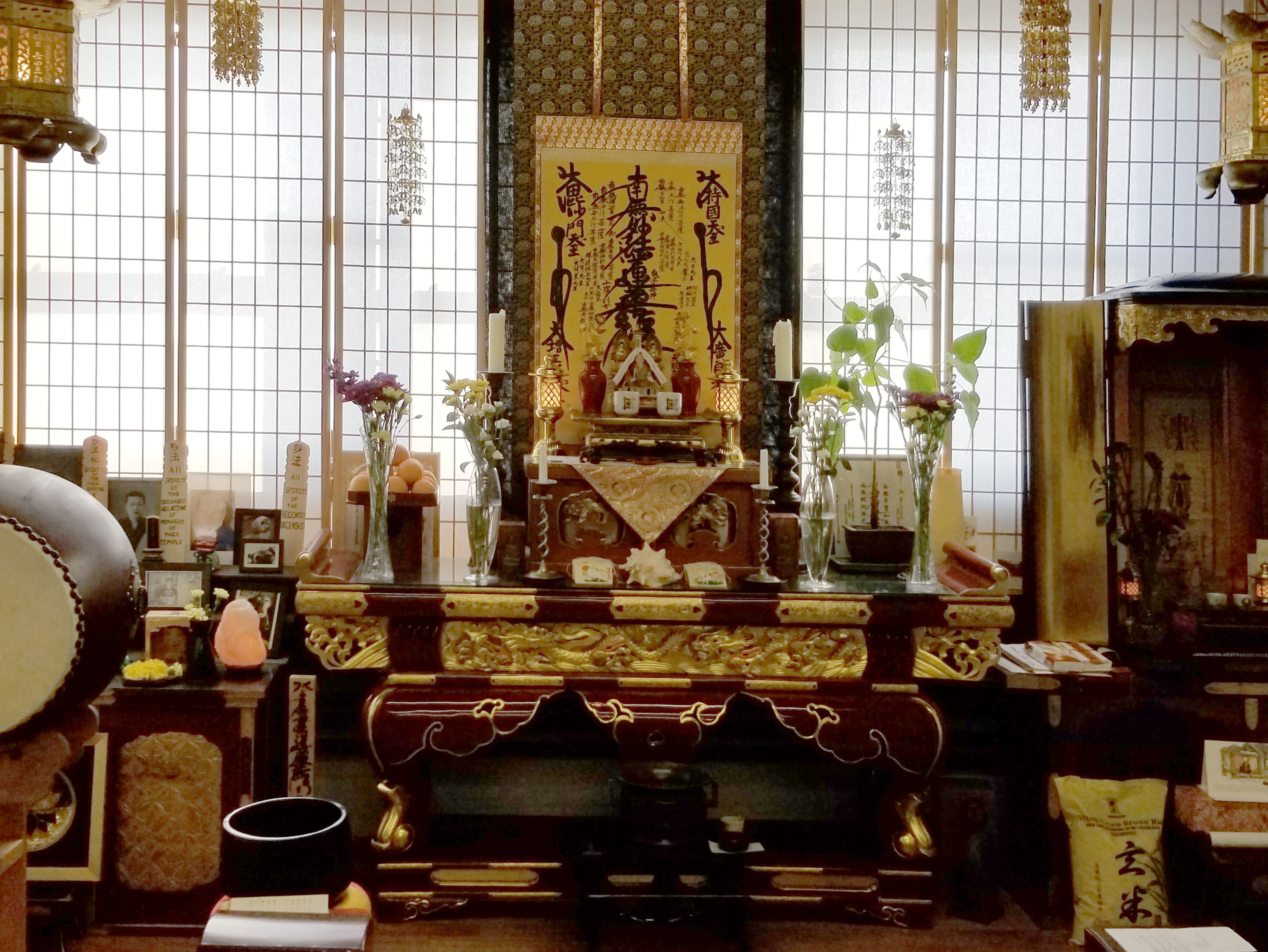 Rochester is led by Shami Kanyu 観涌 Kroll, the founder and acting minister of 祥栄山円教寺 Shoeizan Enkyoji Buddhist Temple. The enthusiasm that Kanyu adds to the Daimoku during the service is the sort of spice that lifts the spirits of the diner (both person and place) and lingers afterward in a warm glow. The service in Rochester was also my first where Shomyo, the Nichiren Shu hymms, were sung by the whole congregation. This I enjoyed greatly. I also liked the Four Great Vows, in which Kanyu recited in Shindoku (or is it Japanese? I get confused) and the congregation responded in English.